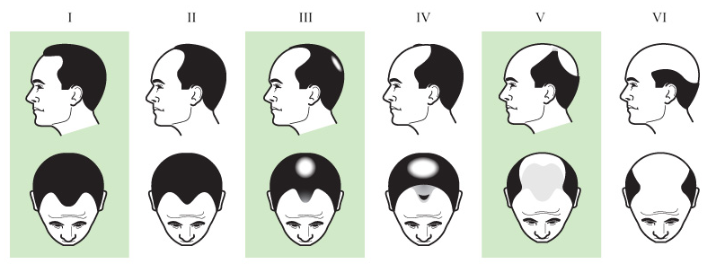 There are several different types of classification scales used to diagnose the extent of a person’s baldness for a hair loss evaluation. The two most referenced grading scales used in hair loss evaluation are the “Norwood” scale for men and the “Ludwig” scale for women. These scales allow Cross Medical Group to determine the severity of the thinning and find the best possible treatment. The Ludwig Scale for identifying female pattern baldness consists of three stages, with Type 1 showing the earliest signs of balding and Type 3 being the most severe.